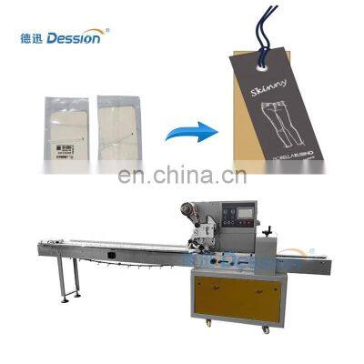 automatic card wrapping machine paper card pillow packing machineMachine IntroductionPackaging ApplicationAutomatic flow packing machine is a widely used packing machine. Suitable for all kinds of product packaging. Including medicalsupplies, vegetables and meat, baked bread, snacks and candy, daily necessities, hardware accessories, etc.Packing EffectThe effect after packaging is back-seal bag. According to demand, other devices can be customized or upgraded to meet other models. For example, pillow bag with hole, bag with label, gusset bag, etc.Machine Structure and ParametersMachine Characteristics1. Double frequency conversion control, the bag length canbe set and cut, no need to adjust the air, one step in place, saving time and film.2. Man-machine interface, parameter setting is convenient and quick.3. Fault self-recognize function, fault display at a glance.4. High-sensitivity photoelectric eye color tracking, digital input sealing position, make sealing position more accurate.5. Temperature independent PID control, better suitable for various packaging materials.6. Positioning stop function, no sticky kuife, no waste film.7. The transmission system is simple, the work is more reliable, and maintenance is more convenient.8. All control is implemented by software, which is convenient for function adjustment and technical upgrade, and never lags behind.ModelDS-250BDS-320BDS-350BDS-400BDS-450DDS-600DFilm Width(mm)Max.250Max.320Max.350Max.400Max.450Max.600Bag Length(mm)65~280130~320120~450130~450Bag width(mm)30~11050~15050~16050~19060~21060~280Products Height(mm)Max.40Max.45Max.110Packing Speed(bag/min)40~23030~18030~150Machine Power220V / 380V, 50/60HZ,2.4KWMachine Size(L*W*H, mm)3770*670*14503770*720*14503770*720*14504020*770*14503990*900*14683990*1000*1468Machine Weight800KG900KG1050KGDetails ImagesMachine WorkflowThis machine is easy to operate. Just set the parameters on the screen, and then you can start the machine. Put the product on the conveyor belt, the machine will automatically pull the film, the bag is formed, sealed, and finally the bag is cut.Multilingual touch screenThe machine supports various language customization, easy to operate.High sensitivity eye sensorThe eye sensor automatically senses the color code to ensure accurate and beautiful packaging effects.Replaceable bag formerWhen you want to change the bag width, you only need to change a different size bag fromer.Electronic control componentUse Panasonic PLC and frequency converter to ensure the stable operation of the machine.Related ProductsWhy Choose UsVR1. Professional and Strong TeamDession has a professional team that can provide customers with various packaging solutions. After fully understanding the customer's needs, we provide the most suitable packaging solution to the customer. Then start the production of the machine. We have a strong production and processing capacity, from the customized processing of accessories to the assembly and debugging ofthe machine. Finally, it is packaged and shipped, and it only takes a week to complete.2. Excellent transportation serviceAccording to the needs of customers, we can provide sea transportation, air transportation, and land transportation services, so that you can get the machine as soon as possible. Provide door-to-door transportation services.3. Timely and effective after-sales serviceChoosing us is not only buying a machine, but also our professional and timely service. 1. When the machine is delivered, we will attach a video of the installation and operation of the machine, so that you can use the machine quickly. 2. All electrical appliances of our machines have a one-year warranty, and we will replace them if they fail. 3. When your machine fails, we will have professional engineers to provide professional online after-sales service to help you solve the problem. 4. If the problem cannot be solved online, we will arrange an engineer to repair it on site within a week.Buyer FeedbackWe have 8 years of experience in foreign trade and export, and now our customers have spread to 90 countries all over the world. With our high-quality machines and professional services, we have won unanimous praise from our customers.Company Profile Dession a leading manufacturer of Packaging machine and supporting facilities, which has successfully developed more than 80 kinds of packaging machines. Dession Packaging Machine has widely applied for different fields throughout the world, such as food/ industrial food, medicines, hotel supplies, disposable goods, rubber goods, daily appliances, hardware fittings, sporting goods, toys etc. Dession has more than 8000 square meters of production plants, 5 production workshops and a parts processing workshop, including small vertical machine production workshops, vertical machine production workshops, pillow machine production workshops, cartoning machine production workshop and filling machine production workshop.FAQQ1:Do you have manual or operation video for us to know more about the machine? Yes, not only manual or operation video, 3D drawing also available to make as per your design,also the video we can make of testing the material from our packaging machine if your packing goods easier for us to find from our local market. Q2:How can I trust you for the first time business ?Please note our above business license and certificate. And if you don't trust us, then we can use Alibaba trade assurance service, guarantee your money, and guarantee your machine's on-time delivery and machine quality.Q3:Is engineer available to serve oversea?Yes, but the travel fee is paid by you. So actually to save your cost, we will send you a video of full details machine installation and assist you till the end.Q4:How can we make sure about the machine quality after we put the order?Before delivery, we will send you the pictures and videos for you to check the quality, and also you can arrange for quality checking by yourself or by your contact
