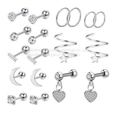 Stainless Steel Stud Earrings,Solid Rhinestone Cartilage Earrings Helix Ear Piercing Jewelry