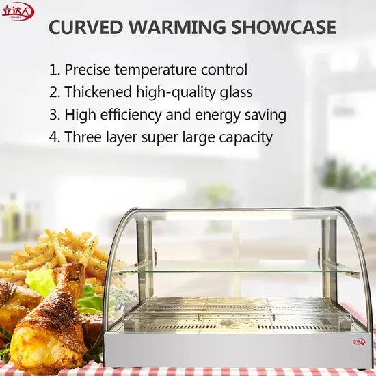 Quick Details Place of Origin: Guangdong, China Brand Name: Lida Model Number: LD-3TX Product:name: curved warming showcase material:stainless steel After-sales Service Provided: Free spare parts, Overseas Call Centers Voltage: 110~125V 220~240V Power:0.8KW Warranty: 1 Year Usage: Restaurant Kitchen , bakery and snack store Dimensions size: 900*500*550mm Pcaking size: 950*550*570mm Packing: Plywood and Carton Outside, Foam Filled Inside Services: OEM ODM Custom Certification: CE Certificate |