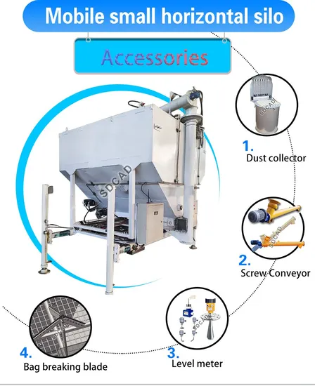 Mobile small horizontal silo, vertical spiral can rotate 360 degrees, movable, no need to install, volume 5-30 tons can be customized, small footprint, easy to transfer, no foundation required, can be fed by ton bags or tank trucks