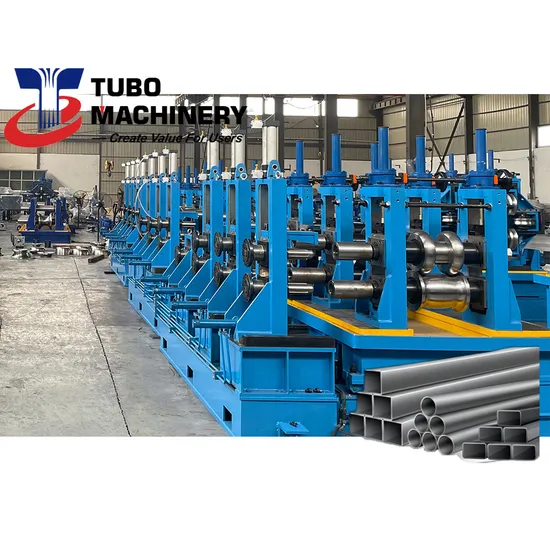 Steel Coil→→ Uncoiler →→Shear & Butt Welding →→Accumulator →→ Forming Section(Main driving unit + Flattening unit & Feeding guide + Forming section) →→ Welding Section (Seam guide stand + High frequency induction welding system+ Squeeze roll welding stand + External bead scarfing + Seam grinding stand)→→ Emulsion Water Cooling Section →→ Sizing mill (Main driving unit + Sizing section + Speed testing unit + Turkey heads straightener)→→ Cutting Saw →→ Run-out Table & Packing Device.