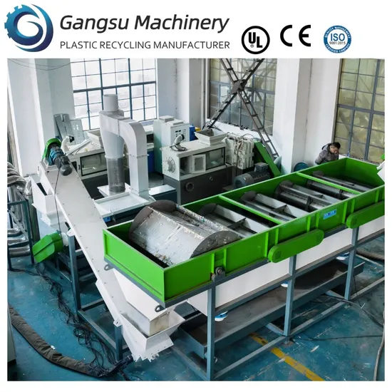 Our specialized HDPE PP recycling line is designed for reprocessing and cleaning HDPE bottles, pails, barrels, and PP pipes. The process includes bale opening, crushing, continuous washing, and drying using friction washing and a dewatering dryer.The final flakes, with less than 1% humidity, can be directly used in our plastic granulator to make pellets. Our automated HDPE PP rigid recycling equipment, ranging from 1000kg/h to 3000kg/h capacity, minimizes labor costs.