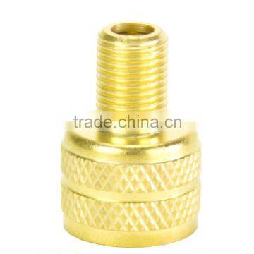 Product Description Large Bore to Standard Bore Tire Valve Adapter, Cap Style This adapter is useful when filling large bore tire valve(agricultural and truck) with standard bore filling equipment. The adapter screws onto the large bore, allowing standard chucks and gauges to interact with the valve. Company Information Our Services FAQ Q1. What is your terms of packing?A: Generally, we pack our goods in transparent PP bag and carton box. If you have other requirement for example, the colorful box of packing, woven bag or bandage, please inform me before the delivery.Q2. What is your terms of payment?A: T/T 30% as deposit, and 70% before delivery. We'll show you the photos of the products and packages before you pay the balance.Q3. What is your terms of delivery?A: FOB Ningbo Port or deliver goods to your Chinese warehouse (your man arrange the rest delivery without any charges on my side)Q4. How about your delivery time?A: Generally, it will take 15 days after receiving your advance payment. The specific delivery time depends on the items and the quantity of your order.Q5. Can you produce according to the samples?A: Yes, we can produce by your samples or technical drawings. Also, we can build the molds and fixtures.Q6. What is your sample policy?A: We can supply the sample if we have ready-made parts in stock, but the customers have to pay the freight charge.Q7. Do you test all your goods before delivery?A: Yes, our test rate is 100% before the delivery.Q8: How do you make our business long-term and good relationship?A:1. We keep good quality and competitive price to ensure our customers benefit. 2. We regard every customer as our friend and we do business and make friends with them sincerely, no matter where they come from. We have been in service since 2000, Please buy with confidence!!!