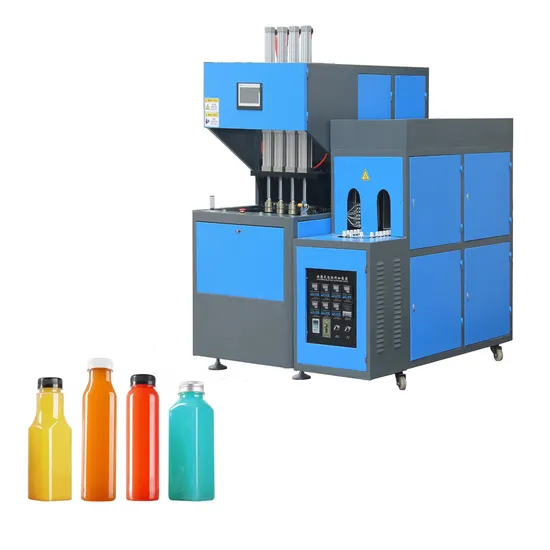 Semi-automatic PET Bottle Making Machine The semi-automatic PET bottle making machine is affordable and has a manual operating system that requires manual labor and can produce 70-2000 5l, 10l, 20l bottles per hour. It is an ideal choice for the production of chemical, fruit juice, mineral water, and edible oil bottles in the beverage and chemical industries.