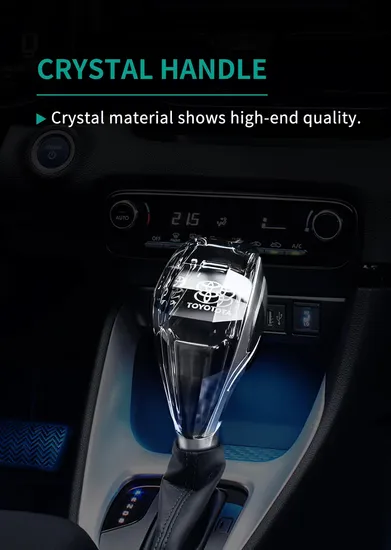 Product advantage. The transparent characteristics of crystal material make the whole handle look very fashionable, and the seven-color light color is more bright and dazzling, more loved by modern people! With extremely high hardness and wear resistance, it can ensure long-term use without deformation or wear. The high-tech metal material embedded inside has extremely high electrical conductivity and sensitivity, which can ensure the driver's accurate shifting operation! As a unique auto accessory, crystal shifter knob has a stylish appearance, excellent performance and a wide range of use scenarios!