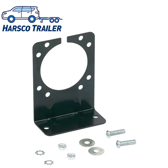 7Pin Plug Trailer Socket Steel Mounting BracketProduct Description: Optimize your trailer's electrical connectivity with the Universal Heavy-Duty 7-Way Trailer Socket Mount, a robust and versatile solution for truck, trailer, camper, and tail light wiring. This mounting bracket is crafted from black powder-coated steel, offering not only a sleek finish but also enhanced durability and weather resistance.