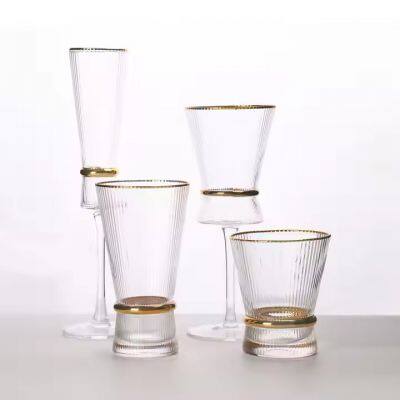 Lead Free Crystal Custom Gold Rim Red Wine Champagne Goblet Glass For Wedding Party Tableware