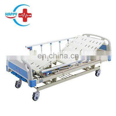 HC-M005 High Quality ABS Three Cranks Mechanical Hospital Bed with cheap priceProduct DescriptionFeatures for HC-M005 High Quality ABS Three Cranks Mechanical Hospital Bed with cheap price: Description & ConfigurationDimension: 2120*970*450-720mm (L*W*H)Accessories: 2 Drainage Hooks1 pc of I. V. Pole with 4 hooks4 pcs of 5’’ Central Controlled Castor1 pair of detachable ABS Head and Foot Board1 pair of foldable Aluminum Side RailOptional Waterproof ventilative mattress Features Epoxy coated mild steel frame work and 4 section perforated top;Removable & interchangeable high quality beautiful ABS engineering plastic head panel and foot panel;High quality foldable aluminum guardrail;High quality foldable ABS handle crank, easy to operate; 125mm diameter noiseless castors with simultaneous braking system which locks / unlocks 2 castors with single pedal press;X-ray availableMaximum safe load: 250kgFunctionsAdjustable Height: 450-720mm (220mm)Angle of back section: 0-75°Angle of leg section: 0-40°Trendelenburg/Anti-trendelenburg: ±12° Pictures for HC-M005 High Quality ABS Three Cranks Mechanical Hospital Bed with cheap price: Packaging & Shipping Company Information Our Services Contact FAQ1. How to place order of HC-M005 High Quality ABS Three Cranks Mechanical Hospital Bed with cheap price?A: Firstly we confirm product details and then send the Proforma Invoice, You make payment to us through Alibaba Trade Assurance or T/T, Western Union or MoneyGram, after we confirm your payment then ship the product to you once finished production. 2. For HC-M005 High Quality ABS Three Cranks Mechanical Hospital Bed with cheap price product, What’s the minimum order quantity (MOQ)?A: For disposable material,We have our own MOQ,For our HC-M005 High Quality ABS Three Cranks Mechanical Hospital Bed with cheap price our MOQ:1pc, 3. What is your warranty?A: For most products the warranty is for 12 months, some products we provide 18 months warranty. For HC-M005 High Quality ABS Three Cranks Mechanical Hospital Bed with cheap price we provide 12 months warranty.4. What’s your delivery time?A: Generally it is 5 working days if goods in stock. within 10 working days if the goods need production, And also the delivery time depands on quantity. For HC-M005 High Quality ABS Three Cranks Mechanical Hospital Bed with cheap price the delivery time is 10 working days .5. How to ship the product?A: The shipping way normally depand on your quantity,total CBM and weight. We have our own shipping company to provide best shipping cost and efficient way.