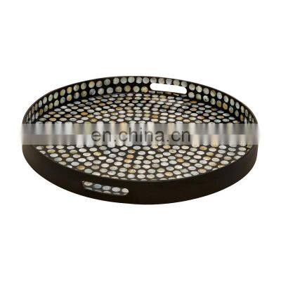 Product DescriptionLuxurious sea shell tray decorative tray for shelves, coffee tables WholesaleHANDCRAFTED BY LOCAL ARTISANS - Our display tray, is handcrafted by the very hands of skilled artisans in Vietnamese. All of our products are handmade, so the actual pieces may vary slightly in color and size from the images shown online.EASY TO CARRY - Our capiz shell wooden platter is flexible in use and could be carried around at ease thanks to two built-in handles. The tray is easy to pick up and rearrange without any troubles.BEAUTY AND FUNCTION - The mother or pearl inlay coating makes this wooden serving tray a unique serveware and decorative piece for the dining table. It adds character and a luxury touch to many styles of decor. The artistic, moroccan - inspired inlaying pattern goes hand in hand with the classy teal color and smooth shiny finish of the tray, giving it an elegant appearance.Plant Fiber Typewood and mother of pearlTypeStorage TraysApplicable SpaceBathroom, Living Room, KitchenPackaging>10ProductFood containerCommercial BuyerRestaurants, Food & Beverage Stores, Super Markets, Hotels, Gifts StoresFeatureSustainableRelated ProductRecommend ProductsMain MarketsMain MaterialPacking & DeliveryCompany Profile
