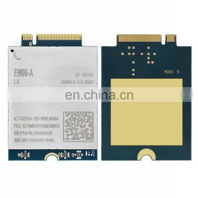 DescriptionOverviewEM06 is a series of LTE Advanced category 6 module optimized specially for M2M and IoT applications. Adopting the 3GPP Rel. 11 LTE technology, it delivers maximum data rates up to 300Mbps downlink and 50Mbps uplink.Designed in the M.2 form factor, EM06 contains 3 variants (EM06-E, EM06-J and EM06-A) for different target regions and these variants nearly cover all the main stream carriers worldwide.EM06 supports Qualcomm® IZat™ location technology Gen8C Lite (GPS, GLONASS, BeiDou/Compass, Galileo and QZSS). The integrated GNSS greatly simplifies product design, and provides quicker, more accurate and more dependable positioning capability.A rich set of Internet protocols, industry-standard interfaces and abundant functionalities (USB drivers for Windows 7/8/8.1/10, Linux, Android) extend the applicability of the module to a wide range of M2M and IoT applications such as industrial router, home gateway, set top box, industrial laptop, consumer laptop, industrial PDA, rugged tablet PC, video surveillance and digital signage, etc.Key Benefits● LTE-A Cat 6 module with M.2 form factor, optimized for M2M and IoT applications● Support LTE-A carrier aggregation● Worldwide LTE-A and UMTS/HSPA(+) coverage● Multi-constellation GNSS receiver available for applications requiring fast and accurate fixes in any environment● Feature refinements: supports DFOTA and DTMF● MIMO technology meets demands for data rate and link reliability in modem wireless communication systemsWhy Choose UsFAQQ1. What is the minimum order quantity for your products?A1. Minimum order quantity starts from ONE piece.Q2. What's the quality of your products?A2. We have professional QA/QC team to ensure the quality before shipment. We provide 1 year warranty for all the new and original products.Q3. Is this product free of shipping or free samples?A3. Regularly the sample and shipping cost will be at the buyer's account. But in specific case, we may take these costs. Please kindly check with us the details by email. Thank you.All Categories4G 5G ModuleGPS ReceiverGPS AntennaGSM/LTE/WiFi AntennaGSM/LTE+GPS AntennaGNSS/GPS Module2G/3G/4G ModemGPS TrackerRF Coaxial / ConnectorSIMCard HolderSensorIC