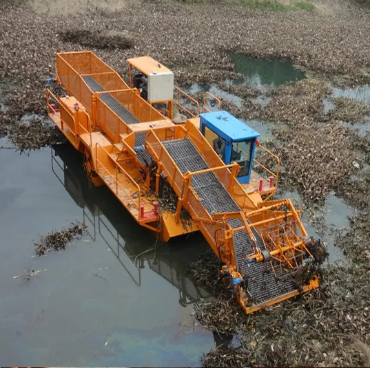 1) Our Harvester is a kind of modern aquatic plants harvesting equipment, which is the collection of mowing grass, gathering, salvaging, filtering water, transporting and unloading.