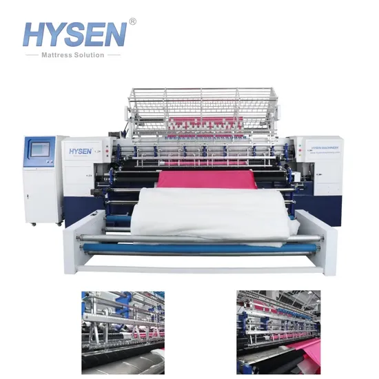 HSY76 Computerized shuttle multi-needle quilting machine, the saddle frame and roller are servo-driven. The main shaft adopts frequency conversion control device. Production speed up to 70-180m/h. Multiple cross quilting (covering 360 degree and 180 degree quilting patterns). Advanced and practical thread breakage detection technology for top thread, automatic stop function for thread breakage. Hand feeling close to infrared sensor, make your operation safer. Adopt CAD drawing method, precise graphics, convenient and quick. Running status detection and prompting, the operation of the machine is clear at a glance. Four-axis drive machine is more solid performance is more stable.