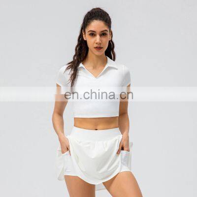 | Product Name | 2022 Ladies short sleeve Cropped Collar Top Activewear Slim Fit Outfits Women Pleated Golf Tennis Short |