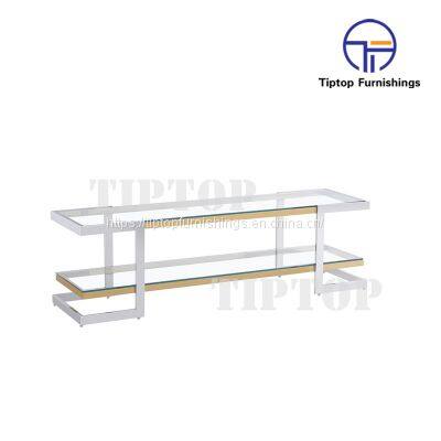 | STURDY & STYLISH DESIGN: A glamorous coffee table with vintage appeal, Point features two intersecting pyramid-shaped brushed gold stainless steel metal tubing for a piece of uninterrupted visual depth and sophistication. | |||