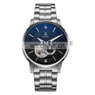 Utime Automatic Men's Watch Visible Mechanical Movement Dazzling Diamond Index Luminous Pointer Japan Automatic Movement U0033GFQA:1. What's your best price for this watch?A: We will quote you best price according to your quantity, so when you making an inquiry, please let us know the quantity you want.2. What's your MOQ? Can I mix styles and colors?A: For watch, MOQ is 500pcs/model for OEM & ODM,Alloy case is 300 pcs/color of our Sinobi Brand ,Stainless steel case 500pcs/model .We can mix colors for you, Usually we don't accept mix styles. But for the first order, and we see your sincerity to cooperate, we will try to accept 300pcs/style,but the unit price will be higher than the unit price of 500pcs.3. What's the delivery time?A:Delivery time Alloy case 25-35 days ; Stainelss steel case 50~55 days after confirmed all details and receipt of deposit.4. Can we print our own logo?A: Yes, we can print logo free for you, we can print your logo and design on the band, dial, buckle, back, case and other place, usually the color of the logo is one color.5.What about the warranty?A: We are very confident in our products, and we pack them very well, so usually you will receive your goods in good condition. But to avoid any subsequent trouble regarding quality issue, we suggest that you check the watches once you receive them, and let us know the details if there is any damaged ones, so that we can deal with it accordingly.6.Do you offer Drop shipping (Blind shipping )?Yes , we offer Drop shipping/Blind shipping,we haven enough experience in drop shipping ,every day we have many watches to send out many countries for Drop shipping.7. Do you do custom watch boxes?Yes, we do custom watch boxes. We can follow your requirement to make the boxes ,or you can select our boxes with your logo, we have many different type watch boxes for you selecting.8. What movement do you usually use in your watches?We usually use Japanese movement ,Swiss movement, and Chinese movement, for example Seiko,Citizen,Miyota,Ronda ,Kingstar we use most.9. What kind of materials do you usually use in your watches’ case?We usually use stainless steel and alloy for case, if you have any special requirement, we can according to your requirement for the case.10.What kind of band do you usually use in your watches ? We usually use genuine leather band , stainless steel band,nylon band, mesh band,PU leather band, silicone band ,and so on.11.What is your packaging?For sample packaging: Gift box packaging: each watch will be put into a gift box then put into a small yellow carton For OEM/ ODM Products packaging:Normal packaging 1.Each piece will be put into a poly bag;2.20 pieces into a white box;3.10 white boxes into a 39*30*33cm carton; Box packaging1. Each watch will be put into a box;2.100 boxes will be put into a carton; Special packaging: As per your request. **Note: Normal packaging service is free.