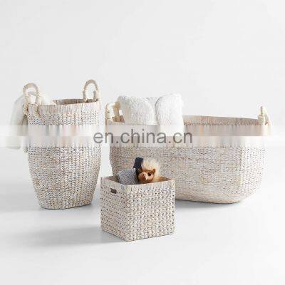 Hot Water Hyacinth Whitewased Storage Basket Set Home Decoration Clothes Laundry Basket In Bulk Wholesale Vietnam Supplier