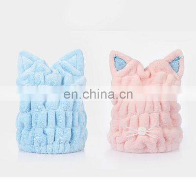 Related ProductProduct Description1.Super water-absorbent and dries your hair fast and save your time, drying it naturally. Reduces risk of split ends.2.Cute Design: This hair drying hat designed in cartoon cat style, makes it more cute and lovely.3.Color: Light Blue+Pink. Because of the different display of each computer, the pictures and objects's color will be slightly different.4.Easy to Use: Bend forward your head and let your hair flow down naturally, Put on the magic hair drying cap and twist around the hair, Fold back the magic hair drying cap button up at the hair.5.Wide Application: Microfiber towels are ideal for daily use at home, in the gym and traveling, it's a great helper in facial, bathing, Make-up, face washing.Product DetailsProduct nameHair Wrap TowelsColorPink, Light blueMaterialCoral fleeceSize23 x 28 cmWeight 68 gramsPacking Size25 x 30 x 5 cmPacking Weight0.15 kgOEMAcceptedProduct ShowsCompany ProfileOur ServiceExpress Delivery by FedEx, DHL, TNT, UPS, EMS Shipment Weight1 - 45 kg45 - 200 kgor MoreMode of ShipmentBy CourierBy Courier / AirBy Air / SeaLead Time5 - 7 days5 - 7 days5 - 7 days30 days to Europe / USADoor to door delivery carrier includes: DHL, Fedex, UPS, TNT, EMS etc.A full range of sea and air logistics to provide you with the most convenientlogistics experience, rapid response to save your time.Payment TermsTrade AssurancePayPal / Secured PaymentWestern UnionBank TransferFor any amount< $ 5000For any amountFor any amountFrequently Asked QuestionsQ: Why choose us?• Lowest factory price with good quality• Low Minimum Order Quantity • Free sample to check quality• We also accept trade assurance order to protect buyerQ: What kind of method do you use to put customized logo?• Silk screen printing • Laser engraving • Etching• Stamping• Embossing / Debossing and any other mode you wantQ: How to save sample cost?• Stocked item, no MOQ. Small batch production also welcomedQ: How to get a sample?• We can supply free sample of standard product, you just need to bear the shipping cost.• For customized sample, please contact us for sample cost.Q: What is sample time and production?• Existing sample: 2-3 days• Customized sample: 7-10 days• Mass Production Time: 25-30 daysQ: What is your shipment term?• We can send your shipment by Sea / Air / Door to door courier, depends on the shipment size we can give you suggestions.• As we are sending shipments frequently by courier , we are getting good discount from the carrier, and we will transfer the benefit to you.Q: What is your term of payment?• We are quite flexible about payment, we accept T/T, PayPal, Western Union, Trade Assurance, etc.Contact DetailsPhone Number0086-512-68080479 (Ext No.602)Email IDsales@esunrix.comWhatsApp+86 13606131434Skypesunrise-sales3WeChatesunrix
