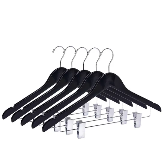 2021 Fashion Custom Black Color Wooden Clothes Coat Pants Hangers Racks with Clips