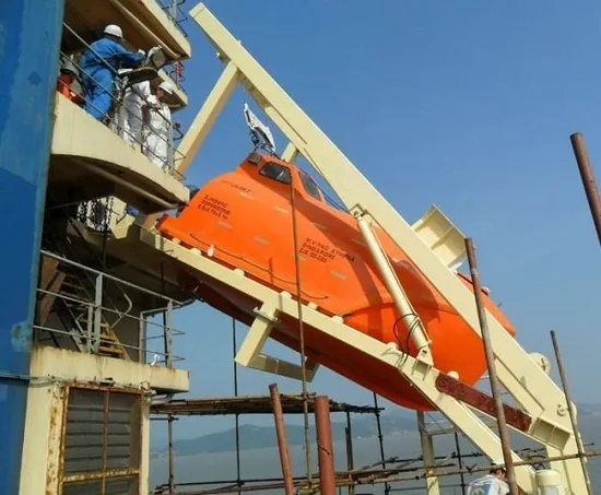 Freefall Lifeboats are lowered depending on itself weight, and recovering the lifeboat and rescue boats using electric boat winches. Freefall Type Lifeboat is suitable in worse ocean conditions, for example the ocean ships.It is highly Fire-Resistant and can self-righting by itself when capsized.