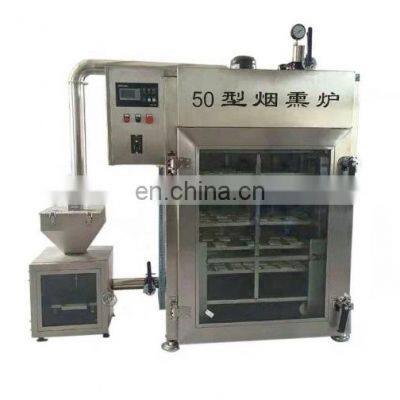 Chicken smoking machine/Meat smoking machine/fish smoking machine smoking meat machine for meat fish duck goose bird. Our machine have two types. One types have two functions, drying and smoking. And the other types have three functions, drying, smoking and air cooking. All of our machines are produced by good quality stainless steel 304. Specification: ModelJX-50JX-100JX-150Capacity50kg /time100 kg/time150 kg/timeTotal power ( Kw)4 kw4.2 kw4.8 kwSteam pressure0.1~0.2 Mpa0.1-0.2 Mpa0.1-0.2 MpaFurnace temperature<100℃<120℃<120℃Machine size (mm)1200*1000*1680mm1700*1050*1978mm1740*1100*2160mm Machine photo : Machine packing photo: Detailed Images