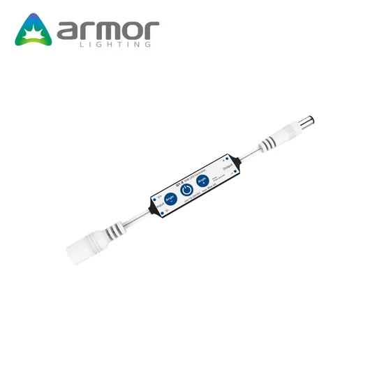 Features 1 channel constant voltage single color LED mini controller. 3 key operation with on/off and dimming. 4A output, connect with 5 meters single color LED strip. 1024 levels 0-100% dimming smoothly without any flflash.