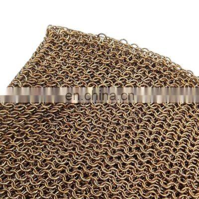 DECORATIVE CHAINMAIL CURTAIN/ RING MESH CURTAINView More, Click Here! Product Destription Ring mesh curtain, similar to chainmail curtain, consists of many metal circles link together. Compared with cloth curtain, the service time of metal material is longer but cost not too much. On the one hand, ring mesh curtain needs low maintenance, wipe it with a soft brush or a piece of cloth is enough, on the other hand, with flexible and durable structure, it is easy to install. And its metallic luster looks noble and elegant under lamplight and sunshine that can decorate your room, office or other places in dreamy colors, it is perfect for using as space divider, hanging on the ceiling wall or background decoration. With these unique metal properties, ring mesh curtain is used for hotels, office buildings, elevators, residences and other places. Application:1. Internal and external decoration: Partition wall, divider or backgrounds in habitation and public rooms etc.2. Garment decoration and viking helmets decoration.3. Pot and pan scrubber. Feature:1. Fireproof: Its meting point is far higher than that of cloth curtain.2. Stable: No shrinks or stretches when used.3. Mildew proof: It will be fine when used in humidity conditions.4. Light diffusing: Light filtration is controlled by curtain fullness and light conditions.5. No Maintenance: Stains can be washed off by mild soap water.6. Permanent: It will last longer than your life except you don’t like to hang it any more. Details:Material: Carbon steel, SS 304/316/316L, copper wire and steel alloy etc.Wire diameter: 0.6-3.0mm.Ring outside diameter: 5.3mm-35mm.Color:Natural, silver, bronze, purple bronze etc. ```````````````````````````````````````````````````````````````````````````````````````````````````````````````````````````````````````````Types of Ring Metal ```````````````````````````````````````````````````````````````````````````````````````````````````````````````````````````````````````````Ring Mesh Specification 12.0 stainless steel Material: stainless steel Ring Diameter: 12.00 mm Wire Gauge: 1.10 mm Weight: c. 3.06 kg/m² Tensile Strength: approx 53 kN/m Open Area: c. 63 % 12.0 bronze Material: bronze Ring Diameter: 12.00 mm Wire Gauge: 1.10 mm Weight: c. 3.45 kg/m² Tensile Strength: c. 33 kN/m Open Area: c. 63 % 7.0 stainless steel Material: stainless steel 1.4404 Ring Diameter: 7.00 mm Wire Gauge: 0.70 mm Weight: c. 2,2 kg/m² Tensile Strength: c. 23 kN/m Open Area: c. 60 % 7.0 bronze Material: bronze Ring Diameter: 7.00 mm Wire Gauge: 0.70 mm Weight: c. 2,49 kg/m² Tensile Strength: c.15 kN/m Open Area: c. 60 % ```````````````````````````````````````````````````````````````````````````````````````````````````````````````````Detail Images ````````````````````````````````````````````````````````````````````````````````````````````````````````````````````Application ·Internal and external decoration.·Divider or background decoration.·Helmets decoration.·Facades.·Exhibition design.·Staircase walls.·Mechanical filtration.·Fireplace screens.·Partition curtain wall. ````````````````````````````````````````````````````````````````````````````````````````````````````````````````````Packing and Delivery Our Company Anping Dongjie Wire Mesh Product Co., Ltd is a premier manufacturer and supplier of wire mesh products located in Anping Town, the famous Wire Mesh Land of China. We have engaged in expanded metal mesh, perforated metal mesh, decorative wire mesh and stamping parts for decades and have accumulated rich experiences in this field. Contact Us