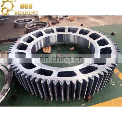 MaterialC45,42Crmo,40Cr,20CrMnTi, Stainless steel and so on as per your requests.Processinging,Machining,Hobbing,Milling,Shaving, Grinding,Heat treatment......Heat TreatmentCarburizing,Induction,Flame,Nitriding......Gear precisionoridinary, 8e, 7e,.....Brand NameHGBPlace of OriginLuoyang HenanWarranty12 monthsPayment termT/T is our first choice Packing details1,Filling with anti-rust oil2.Corved with Plastic paper3.Corved with kraft paper 4.Corved with Blue tie 5.Put in wooden box1.Q: Are you trading company or manufacturer ?A: We are professional slewing bearing manufacturer with 20 years' experience.2.Q: How long is your delivery time?A: Generally it is 4-5 days if the goods are in stock. or it is 45 days if the goods are not instock, Also it is according to quantity.3.Q: Do you provide samples ? is it free or extra ?A: Yes, we could offer the sample, it is extra.4.Q: What is your terms of payment ?A: Payment<=1000USD, 100% in advance. Payment>=1000USD, 30% T/T in advance, balance before shipment.5.Q: Can you provide special customization according to the working conditions?A: Sure, we can design and produce the slewing bearings for different working conditions.6.Q: How about your guarantee? A: We provide lifelong after-sales technical service.Contact usWechat/Whatsapp: +86 18603790073Email: daisy@hgb-bearing.comCompany Name: Luoyang Hengguan Bearing Technology Co., LtdOffice Address: Room 1917, Block B, Yunfeng International, Jianxi District, Luoyang City,ChinaFactory Address: Bearing zone in Yiyang County, Luoyang City, China