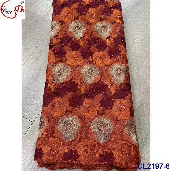 2.Fashionable wedding dress African embroidered fabric with the charm of antique brass and antique copper, featuring intricate designs.