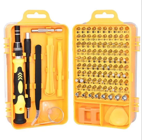 Set type: multifunctional combination set Contains: 110 Material: chrome vanadium alloy steel Rotary head: Y-shaped, plum-shaped, square-headed, rice-shaped, cross, single-line, star, hexagonal System: Metric Head specifications: T5, T6, t7, PH00 #, T8, T9, PH2 #, PH0 #, 2.5mm, PH1 #, 2mm, 3mm, T20, T25, T15, 1.0mm, PH000 #, 3.5mm Weight: 488 (g) Scope of application: precision instruments