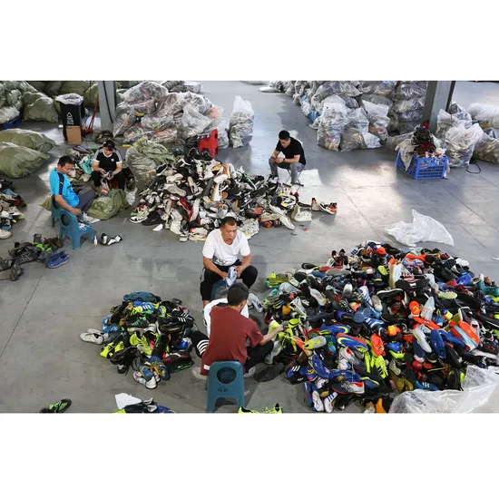 Hissen es la mayor fábrica de clasificación de zapatos usados en China, con zapatillas de marca internacional para hombres, zapatillas de marca internacional para mujeres, zapatos de marca internacional para niños, zapatillas mixtas de marca china, zapatillas de marca de caña alta, zapatillas de marca de caña baja, línea de clasificación de zapatos de tabla para hombres. Nuestros zapatos tienen buena retroalimentación en América del Sur, Oriente Medio, Sudeste de Asia, Somos famosos por nuestra limpia, nuevo estilo, colorido y sin defectos.