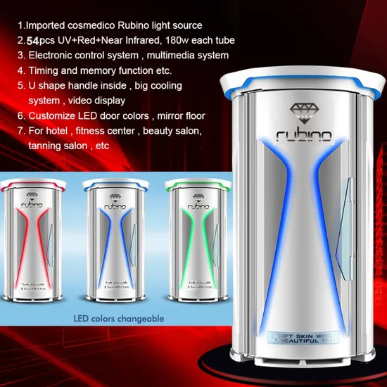 Vertical tanning bed has the perfectly balanced spectrum of effects of UV and red light for smooth skin and a beautiful tan. Its red light spectrum increases the UV-compatibility and thus also the feel-good factor during the application.
