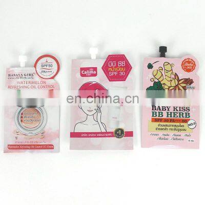 Mylar material small spout pouch cosmetic sachet packaging bagsMaterialBOPP, Matte OPP, PET, NY, VMPET, VMCPP, AL, PE, LDPE, HDPE, CPE, kraft paper, etcBag Typestand up pouch, kraft paper bag, block bottom bag, aluminum foil bag, vacuum bag, ziplock bag, spout pouch, OPP bag, etc.All the bags are customized.Thickness20mic-200micColour1-8 colours, gravure printing & offset printingSampleexisting samples are free. custom samples are paid.Advantages1)the material are absolutely non-toxic, food grade2) some material can be bio-degradable;3) waterproof and good barrier to many kinds of gases;Terms of payment30%deposit,70% before shipment. T/T, western union , paypal, Alibaba Trade Assurance Order