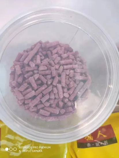 General Information: It belongs to the second-generation anticoagulant which has a good palatability and is popular with all over the world. Usually, it will be safe for the human and non-target animals. Besides, it can be applied to dwelling houses, hotels, restaurants, warehouses, farmland and so on. Technical Data: Common Name: Brodifacoum Active Ingredient: 0.005% Brodifacoum CAS No.: 56073-10-0 Molecular Formula: C31H23BrO3 EC No.: 259-980-5 Individual Packing: 100g/sachet, 500g/bag, 1kg/bag, 1kg/pail, 5kgs/pail, 6.5kgs/pail, 10kgs/pail & 25kgs/drum; Outer Packing: Corrugated Carton or Pallet How To Use: For more safe, putting the Rodenticide Bait inside the bait station then locked, to avoid touching with Children or pets. In the places where mice often appear, put it along the foot of a wall or shadows. Outside, put it nearby mouseholes or mousepassages. 10 to 20g per m2, the stack distance is 5m. The more the quantity of mice is, the more the quantity of stack is. The death time is 2 to 11 days. If has water in circumstances, it will improve the effect of deratization. Cautions: During production or use, should wear respirators, protective gloves and clothing. After putting rodenticides, flush with plenty of water and soap immediately. Be ware of eating by mistake. If do and poisoning, should be sent to the hospital. Package: