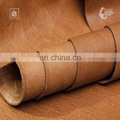 Product Description Factory Direct Supply Pre-distressed Appearance 16Sqft Size Full Grain Vegetable Tanned Genuine Leather Buff Milled Vt Is One Of The Best Sellers From Our Classic Ranges Of Leather. This Is Timeless Leather That Is Vegetable-Tanned And Drum Dyed. The Milling Process Produces A Smooth, Calf-Like, Supple Feel. It Has A Semi-Aniline Finish To It And Has A Very High Premium And Classy Look With Consistent Colors And Fine Milled Grain Structure/Optics. WE CAN WORK FOR THE PRIVATE LABEL Specification Product NameVegetable Tanned Genuine LeatherProduct TypeVegetable Tanned LeatherMaterialBuff SkinTypeGrainThickness1.2mm Size16 Sqft Look & SurfaceMatte, Full Grain And Pre-Distressed AppearanceTanning Vegetable TanningQuality Grading A90%Quality Grading B 10% Packing & ShippingAbout Us Dugros Leather India Pvt. Ltd., founded in 2006, is an ISO 9001:2015 certified and BSCI –compliant professional OEM/ODM manufacturer. We have been specialized in designing and manufacturing all kinds of genuine leather bags, wallets and accessories for over 15 years. We firmly believe our distinction in this competitive industry is our leather. Our LWG certified tannery has a versatile manufacturing capability which caters to the existing needs of our clients and also to their latent desires. With over 2 decades of experience in the leather industry, we are one of those rare companies to have found the perfect balance between customer satisfaction and product quality. In this pursuit we have developed over a thousand types of leather, each having its unequivocal characteristics and colors. Our raw material comprises of the finest hides in India, which is processed from an exclusively designed tanning process. Our tanning process is machine-driven, with the state of the art technology from Europe. Research and Development are of great importance in today’s leather business as the level of competition, production processes and methods are rapidly changing. It is of special importance to us where we have to be vigilant about the modern trends and analyze the needs, demands, and desires of our customers. Certain developments of the past have outlived the time factors and has been our best sellers for a very long time. The texture and the quality of our leather make it so uniquely versatile that it can easily be molded into the creation of any desirable product. Our R&D team constantly focuses on creating leather keeping in mind the latest trends in fashion and customer preference. Our constant efforts allow us to develop new varieties of leather not only quarterly but even on a monthly or a weekly basis. Certificates Our Services SAMPLE SERVICES We can replicate any design provided by you and as per your specimen sheet. After making the sample, we do prepare cost sheet and quote our best price based on the quantity. The lead time is 7 to 15 days, depending on the product. Sample prices charged will be refunded after we receive an order according to our MOQ. CUSTOMIZED SERVICES Customized logo can be printed. Sample orders are accepted. Quick response and fast delivery are guaranteed. Customers' designs are welcome. LOGO SERVICES Engraving Laser printing. Silk screen printing: used for simple logos. Colorful foil logos. Rubber sticker printing. UV printing (matte/glossy): used for special material printing. We have all these printing craft and can do as your requirement. AFTER-SALES SERVICES When you place an order with us, during production we will capture clear photos of your products so you can see them step by step. We can book container for you by our forwarder and calculate all kinds of costs during shipping and keep follow up of your goods. If our goods have any kind of problem or quality issue, you can contact us anytime and we will do our best to solve the issue. FAQ 1. Q. Can your factory make any leather goods? A. We have 15 years of expertise in producing leather men’s bag, ladies handbag, backpack, office bag, travel bag, wallets, credit card holders, passport covers, clutches, pouches, slings, key holders, Aprons, gloves, kitchen appliances etc. We also make bags in canvas, fabric, jute, PU. 2. Q. Are those products on your website all genuine leather? A. We primarily deal in genuine leather as we produce the leather ourselves in our in-house tannery. But we do also make goods out of canvas, jute, fabric and PU. 3. Q. What about your products, do they meet the European's environmental standards?A. We abide the EU regulations and meet the standards as we are an SA 8000, LWG Tanners, and ISO 9001:2015 - company. 4. Q. What payment method can you accept?A. PayPal, L/C, D/P, T/T, 30% ADVANCE PAYMENT payments for offline orders. 5. Q. What is your MOQ?A. Bags- 100-200 pcs per style per color. Wallets- 200-300 pcs style per color. Small accessories: 300-500 pcs per style per color. 6. Q. What about the lead time?A. 45-80 days depending on the product and quantity. 7. Q. How can I visit your factory? A. (a) OFFICE ADDRESS- 21E, Gorachand road Kolkata-700014 West Bengal, India. (b) FACTORY ADDRESS- zone no.8/plot 622 Kolkata leather complex Kolkata-743502 WestBengal, India.Get in Touch with Us