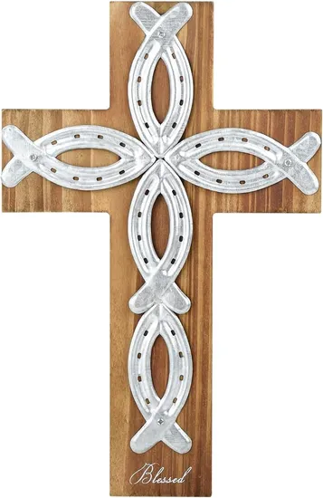Unique Wood & Metal Cross: The cross is handmade entirely of solid wood with an iron cross, and the iron cross is a unique design, and a blessed letter design. Perfect Size Cross for Decor: The Farmhouse retro hanging cross size is 11.3 inches high and 7.4inches wide,(29 x 18.5 x 1.5 cm )great for wall decor. Beautiful Wall Decor: The wooden & iron cross has a hook design on the back of the cross for hanging. Great for wall decor for the home, it is durable for displaying the door, living room, bedroom, church entryway, house entrance wall, or child's room, wall cross decor. Religious Decorations: It can be used for religious ceremonies. It is perfect for many occasions, such as for a wedding christening, first communion, confirmation, house blessing, gifts for clergy members and teachers, Thanksgiving day, and Christmas, and it is destined to become a treasured heirloom. Best blessed gift. Beautiful Meaningful Gift: Carefully packaged in a fitted box for easy gifting and storage .you can decorate your room, or give it to church members, believers, your family, or friends as a gift. Detailed Photos