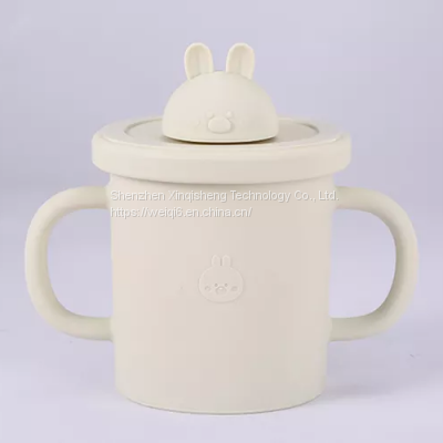 BPA Free Baby Silicone Sippy Cups Animal Shape Kids Toddler Training Drinking Silicon Straw Cup with Lid