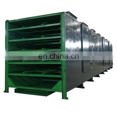 Carbon steel charcoal briquette chain plate dryer mesh belt dryer price 500-1000kg per hourProduction description The riquette mesh belt dryer also named chain plate dryer, it is a kind of drying machine use steel net belt as transport carrier and dry material continuously. Because transmission belt is mesh, so this dryer can dry regular or irregular shape various briquette (for examples: coal, briquette of all kinds of mineral, food and vegetables). This briquette mesh belt dryer can be used with other supporting machine and also can be used alone. Especially it is the ideal dry equipment of various kinds of materials briquette production line. Working principleMesh belt type drying machine main principle is the material evenly tiled on the mesh belt, is driven by the drive device in the dryer moving back and forth, hot air in materials and the cross flow, water vapour from the wet discharging hole in discharge, so as to achieve the purpose of drying. Network with 12-60 to wire mesh belt, the body length by a combination of the standard section, in order to save space, the drying mechanism into multi-layer, common has two room three and two-room five layers, length 6-40m, effective width 0.6-3.0m.The material has the nose to enter slowly through the drying for drying, net belt line speed depending on the type of material and water content. Air flow to the use of negative pressure, porous air, to ensure the effective drying area, wind speed distribution uniformity, improve the drying effect. In order to get the best drying effect and the appropriate output, the water content of the material, the line speed of the net belt, the air volume and the air temperature must be the appropriate, reasonable and organic combination.Technical parameters ModelDW-1.2-8DW-1.2-10DW-1.6-8DW-1.6-10DW-2-8DW-2-10DW-2-20Quantity of unit45454510Width of belt(m)1.21.62Length of dry section(m)81081081020Operation temperature(oC)50-140Steam pressure(MPa)0.2-0.8Steam consumption (kg/h)120-300150-375150-400180-500180-500225-600450-1200Drying time (h)0.2-1.21.25-1.50.2-1.20.25-1.50.2-1.20.25-1.50.5-3Drying capacity(kg water/h)60-16080-20085-220100-260100-260120-300240-600Total power (kw)11.413.614.618.719.724.551 Overall sizeL(m)9.5611.569.5611.569.5611.5621.56W(m)1.491.491.91.92.322.322.32H(m)2.32.32.42.42.52.52.5 Packaging & Shipping CaseCompany InformationFAQWhat kind of material can be dried by mesh belt dryer?Answer: Nearly all kinds of lump and chips material can be dried by our machine such as wood chips, leaves, coal briquettes, charcoal briquettes, iron pellets, etc.What kind of fuel can be used with the mesh belt dryer?Answer: Diesel, natural gas, coal, wood chips and other kind of fuel.What's the drying temperature of the mesh belt dryer?Answer:Drying temperature of the dryer is adjustable. It varies from 70 to 350 °C.How long will the briquettes stay in the mesh belt dryer?Answer:Normally the drying time will be about 50-120 minutes.Is the belt speed adjustable?Answer: Yes, the belt speed is adjustable to make sure it can dry material with different moisture.