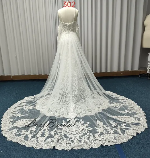 302Sweetheart Neckline and Spaghetti Straps Wedding Dress with Detachable Long Sleeve Bridal Gown Dress with Detachable Long Train Mermaid Skirt Dress Wholesale