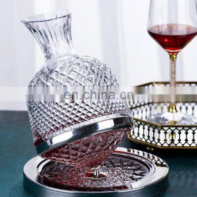 You May LikeProduct Description【360° rotating decanter】For wine lovers an excellent wine set can greatly enhance the sense of ritual of wine tasting.The bottle can be rotated 360° on the base. The overall shape is exquisite and luxurious.Leave wonderful wine tasting memories for you and wine lovers.【Lead-free crystal decanter】Use lead-free crystal material,can be used safely and securely.Hand craft cutting design,Made by skilled craftsmen. Every angle is shining,Looks noble and luxurious.Placed in the wine cabinet and shop window is definitely a bright spot.【50% increase in sobering speed】Use our wine decanter,Special design through rotation,Free your wine from air restrictions.Wake up speed increased by 50%.Improve its purity, aroma and taste,Let the wine rejuvenate its vitality.【Perfect choice for self-use and gift】This unique design,Special for wine lovers.As Christmas gifts, wedding gifts, housewarming gifts, birthday gifts, happy anniversary gifts.No matter what special occasion.Rotating decanter will be a good gift. Packing: 1 x Luxury decanter, 1 x Rotating base.Product DetailsProduct nameRed Wine DecanterCategoryDecanterMaterial Glass-Crystal Size24 x 20.2 cmWeightDecanter-1.5 kg Base-2.3 kgColorTransparent+silverStyleEuropean styleOEMAcceptedProduct ShowsCompany ProfileOur ServiceExpress Delivery by FedEx, DHL, TNT, UPS, EMS Shipment Weight1 - 45 kg45 - 200 kgor MoreMode of ShipmentBy CourierBy Courier / AirBy Air / SeaLead Time5 - 7 days5 - 7 days5 - 7 days30 days to Europe / USADoor to door delivery carrier includes: DHL, Fedex, UPS, TNT, EMS etc.A full range of sea and air logistics to provide you with the most convenientlogistics experience, rapid response to save your time.Payment TermsTrade AssurancePayPal / Secured PaymentWestern UnionBank TransferFor any amount< $ 5000For any amountFor any amountFrequently Asked QuestionsQ: Why choose us?• Lowest factory price with good quality• Low Minimum Order Quantity • Free sample to check quality• We also accept trade assurance order to protect buyerQ: What kind of method do you use to put customized logo?• Silk screen printing • Laser engraving • Etching• Stamping• Embossing / Debossing and any other mode you wantQ: How to save sample cost?• Stocked item, no MOQ. Small batch production also welcomedQ: How to get a sample?• We can supply free sample of standard product, you just need to bear the shipping cost.• For customized sample, please contact us for sample cost.Q: What is sample time and production?• Existing sample: 2-3 days• Customized sample: 7-10 days• Mass Production Time: 25-30 daysQ: What is your shipment term?• We can send your shipment by Sea / Air / Door to door courier, depends on the shipment size we can give you suggestions.• As we are sending shipments frequently by courier , we are getting good discount from the carrier, and we will transfer the benefit to you.Q: What is your term of payment?• We are quite flexible about payment, we accept T/T, PayPal, Western Union, Trade Assurance, etc.Contact DetailsPhone Number0086-512-68080479 (Ext No.602)Email Idsales@esunrix.comWhatsApp+86 13606131434Skypesunrise-sales3WeChatesunrix