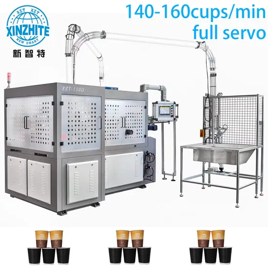 XZT-150D full servo paper cup sleeve Machine designed to wrap paperboard materials around paper cups at a production rate of up to 160 double wall cups per minute, depending upon package size and conversion materials selected.