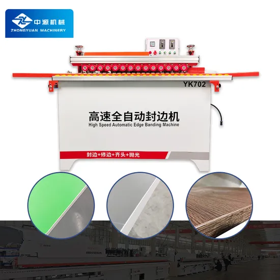 High-speed fully automatic edge banding machine: This machine has anintegrated pressure beam design, siliconetransmission belt, straight-linedouble-sided gluing, large-capacity qlue pot, automatic feeding/breakingcuttingend, vacuum cleaner and double-sided polishing, perfect edgebanding effect.