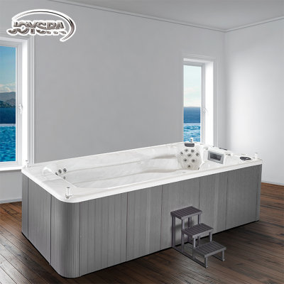 Hot SaleProducts DescriptionHottub Factory Indoor Swimming Pool Spa Outdoor Swim Spa with StepOur spas and hot tubs are manufactured strictly according to ISO9001:2008 Quality ManagementSystem guidelines, and each spa is made with:1.USA Imported durable acrylic.2.Low running cost.3.Three Layers Acrylic shell, Duaralbe&Hand-sculpted Shell.4.Long Lasting Frame-Pressure Treated Wood for many outdoor conditions.JY8601 ParameterDimensions5870x2200x1520mmCapacity7600LSeating5seats+1loungerDry Weight1275kgFilled Weight8000kgTotal Jets59pcsEquipmentHigh Performance Pumps2x2HP, 2x3HPController2pcsCirculation Pump2x0.5HPSynthetic Cabinet1pcHeater2x3kwDrain1pcLED light2pcsFiltration1pcBlower400wHigh Density Foam Insulation1pcAromatherapy1pcHeadrest3pcsOzone1pcProduct DetailCompany InformationContact UsAny questions or inquiries, please feel free to contact us, we will always do our best for you!