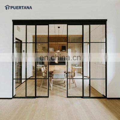 Product DescriptionGlass StandardComply with AS2208 / IGCC / CE / ISOStandard/CertificateComply with AS2047 / CE / ISOThermal InsulationU value from 1.1 to 2.0 W/M2kWindow RatingN6Sample lead time7 daysWater penetration600 paUltimate strength4500paAir infiltration75/150Extrusion alloy6063-T5 profile with 2.0-3.0 mm thickness for doorHardwareChina top brand;German brand with 10 year warrantySurface treatmentPowder coated, Electrophoresis, PVDF, Anodizing, or wood colorPackingWooden or Carton Box with Bubble Bag, Clear film,Foam inside.Delivery15-35 Days after order confirmedDetails ImagesWe are offering?You can choose the size, number, and finish of glass panels as well as add a perimeter frame and strip pattern to them to increase safety and bring a touch of modern into your place.We ensure proper installation of sliding glass door systems even in complex conditions, such as uneven walls, ceilings, and floors.The new soft-closing technologyFEATURES: 1. Closing action is PROGRESSIVE and slows down as the door approaches the fully closed position 2. Anti break feature on the trigger 3. Ensures safe braking and prevents bouncing of the door 4. Ensures the door is braked SAFELY 5. Ensures the door is held firmly in the closed position 6. Combines an aesthetically pleasing action with safe soft closing for doors up to 242 lbsDurable tempered glassFor sliding door glass panels we use an only monolithic tempered glass of thickness ⅜’’, which is both durable and safe. Such glass can tolerate heavy impacts and scratches and is nearly unbreakable in home and office conditions.Harmless even if brokenIts only rather vulnerable place is edges: damaging edges can break the glass. However, even if broken, the glass remains safe since it is shattering into relatively harmless inch-size pieces.Soft closing technologyTo protect edges from cracking, we use special sliding door hardware with an anti-chock braking system. It ensures soft closing and protects the door and users from impact damage.Running smoothly for 25 yearsBy the way, the door hardware we use has successfully passed a test of 100,000 opening and closing cycles. That means it can run smoothly for approximately 25 years.Thoughtful designWhen the glass area is large, there is always a risk that someone will fail to recognize the glass and will try to walk through it. The strip pattern as well as frosted glass finish help prevent these risks.Company Profile Founded in 2010,Foshan Puertana building materials Co.,Ltd. is a modernized enterprise that specializes in high-end aluminum alloy doors&windows,solid interior frosted glass doors,sunrooms and shower rooms etc, integrating R&D,manufacturing,sales and service.It covers 30,000 square meters, and has over 500 staffs. We are One Stop Building Materials Supplier , we mainly working with the Housing Builder, Developer, Contractor and individul houses , most of our customers from North America , Europe , Australia , and our products can meet the local Building Code.Our AdvantagesPre-sales service• 24 Hours Online Consultant. • Sample Support. • Free Pick-up At Hotel / Airport To Visit Factory. • Quick & Professional Response To Quotation Request And Technical Question.Production period service• Shop Drawing Submitted To Double Check Details. • Quality Inspection Report Submitted. • Logistics Service Support. • Installation Solution Provided.After-sales service• Providing The Installation Guide And Solution. • 10 Years Quality Guarantee. • Any Quality Problem Replace Freely.CertificationsProject GalleryProduct packagingFAQQ: Are you a factory?A: Yes. We are factory. Q: What's your payment term?A: T/T 30% deposit, full balance against delivery Q: Can you help with delivery?A: Yes, we can do FOB, CFR, CIF, DDU. Q: What's your period of production time?A: Normally it's 25-30 days. It's negotiable. Q: Will you check the products' quality before delivery?A: Yes, we have QC department so we can make products 100% good for you. Q: What color can you do for the products?A: We have standard colors for every product. But we can customize it for you.