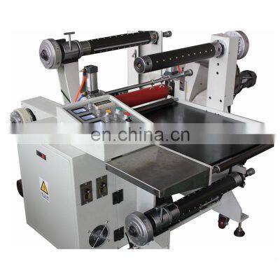 Plastic film paper fabric PE foam sheet laminating machine Functional Characteristics:1.Magnetic powder control the unwind and rewind tension.2.Frequency conversion is used for speed regulation of the main motor.3.The cylinder control the rubber roller up and down.4.Automatic meter counting,stable laminating,fast,high precision,low wastage,and easy operation.5.Optional:1.Photoelectric tracking system to keep the unwind material in line.2.Slitting function.3.Hot laminating function.4.Sheet laminating function.5.Can make as your requirements. Specification:ModelDP-420DP-650Max feeding width420mm 650mmUnwinding diameter400mm400mmRewinding diameter450mm450mmShaft diameter 3inch3inchPrecision±0.3mm±0.3mmTotal power1.5kw2.2kw Configuration:Unwinding shaft : 3 inch inflatable shaft 2 pcsRewinding shaft : 3 inch inflatable shaft 1 pcsMagnetic brakes : 2 set Magnetic clutch : 1 setLaminating motor: 1set Laminating roller : 2 (PU material)Air cylinder : 2 pcs