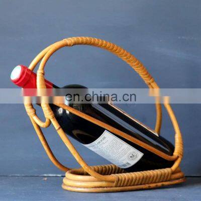 Hot Sale Decorative Vintage French Vintage Rattan Bottle Basket, 1960s Rustic Wine Bottle Holder Rack Wholesale Vietnam Supplier