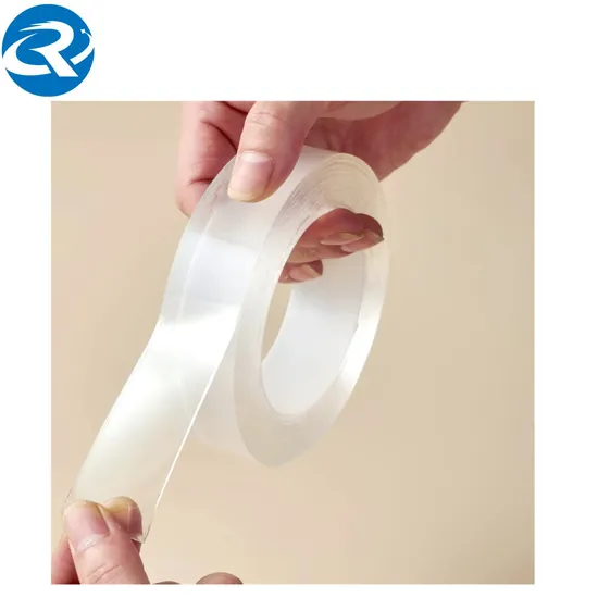 Double sided adhesive Super clear Washable reusable no residue nano tape Product Description It's a incredible new advanced-grip technology tape. It can be fully used in various ways that adopt nano technology. It is more covenient than the traditional ways to attach things on the wall and floor.