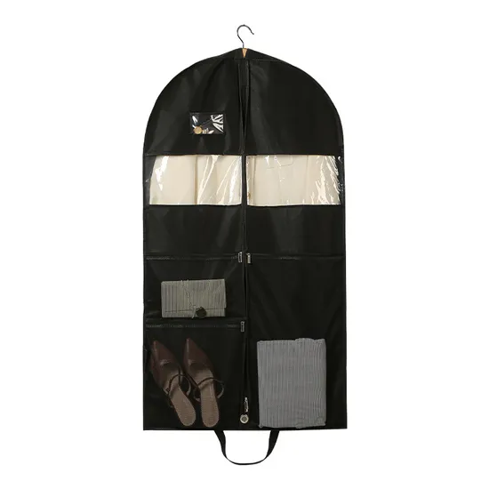 A garment bag or suit bag is a container of flexible material, usually used to ease transporting suits, jackets or clothing ingeneral, and also to protect clothes from dust by hanging them inside with their hangers and then in the closet bar. The simplestmodels usually have a zipper that opens from top to bottom, in the middle of one side. They can be manufactured with differentmaterials: fabric, leather, plastic, etc...