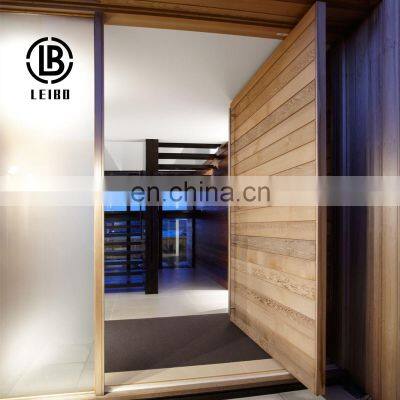 Product SpecificationProduct nameAluminum Pivot DoorProfile1.High quality aluminum alloy profiles, thickness 1.2-2.0mm2.Excellent quality thermal break aluminum profiles, thickness 1.4-2.0 mmGlass type1.Single toughened glazing:6mm/8mm/10mm/12mm...2.Double toughened glazing:5+12A+5mm/6+12A+6mm..3.Laminated glazing:5+0.38PVB+5mm/6+0.76PVB+6mm...4.Low-E glazing:Green/Bule/Brown/Golden...5.Other glazing:frosted glass/crystal glass/art glass...Mesh1.Aluminum security mesh2.Stainless steel security mesh3.Solid iron security mesh4.Mosquito net(Nylon,Stainless steel,Diamond)Hardware1.Germany brand2.Australian brand3.Chinese top brandSurfacetreatment1.Anodizing2.Powder coating3.Electrophoresis4.Fluorocarbon paint Company InformationAbout UsFoshan Leibo in 1998 and developed trade business in 2005, Foshan Leibo Cunstrction Material Factory has experience inmanufacturer and exporter more than 12 years. We are specialized in the development and production of aluminium doors&windows,aluminum balcony&handrails, steel door , stainless steel door , iron sheet etc.All of our products comply with internationalquality standards and are greatly appreciated in different markets throughout the world.Our CustomerProject CooperationPackingFAQ1.How can I get the price? "-We usually quote within 24 hours after we get your inquiry(Except weekend and holidays). -If you arevery urgent to get the price, please email us or contact us in other ways so that we can offer you a quote." 2. Can I buy samplesplacing orders? -Yes.Please feel free to contact us. 3.What is your lead time? "-It depends on the order quantity and the seasonyou place the order. -Usually we can ship within 7-15 days for small quantity, and about 30 days for large quantity." 4.What isyour payment term? T/T in advance for sample, TT 40% in advance, balance before shipment for bulk order 5.What is the shippingmethod? "-It could be shipped by sea,by air or by express(EMS,UPS,DHL,TNT,FEDEX and ect). Please confirm with us before placingorders." 6.How do you make our business long-term and good relationship? "-1. We keep good quality and competitive price to ensureour customers benefit ; -2. We respect every customer as our friend and we sincerely do business and make friends with them,nomatter where they come from."