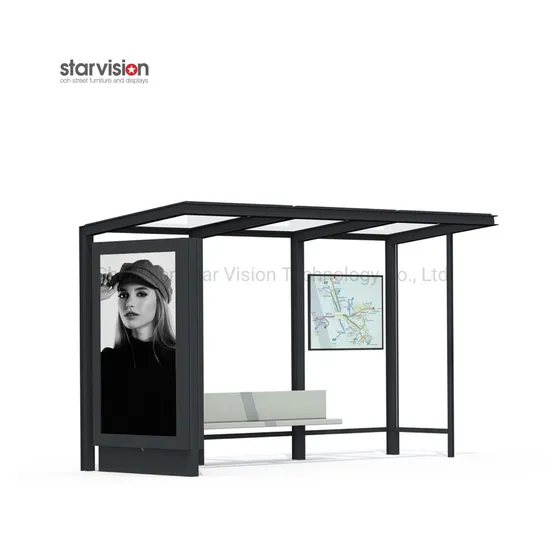 The bus shelter can be integrated with 6 sheet static advertising, or high brightness 75 inches LCD dynamic advertising, we can install solar panels on the roof of the bus shelter, and also integrate mobile charging station near the seats.