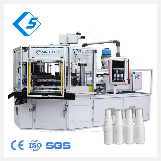 The machine is a full automatic injection molding equipment, suitable for processing PP, PS, PE, SAN, PMMA, PC, PETG, PEN and other thermoplastic, widely used in pharmaceutical, health care products, food and beverage, cosmetics, etc..One Mold with Multi-caivity for automatic continuous production technology, using three horizontal station rotary device, hot runner system and multi-stage injection molding system,injection molding, blow molding, demolding three position and action to ensure equipment of high efficiency and energy saving operation, ensure smooth product bottle, the bottleneck of inner and outer diameter and thread high precision, no waste is the standard equipment of modern enterprise environment-friendly production.